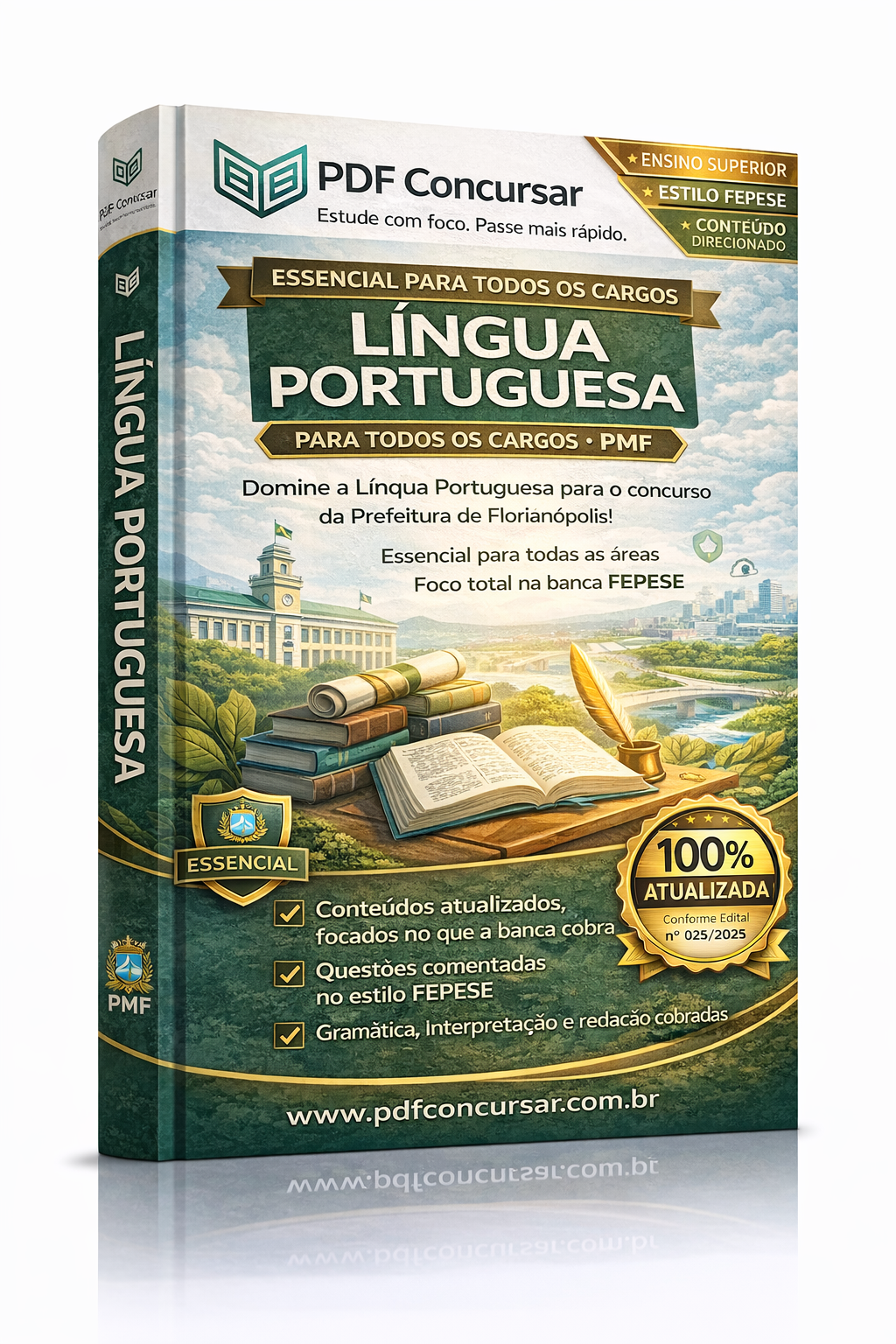 Este material é essencial para todos os cargos da Prefeitura de Florianópolis (PMF) e foi estruturado para levar você da teoria à prática com segurança e alto índice de acertos.