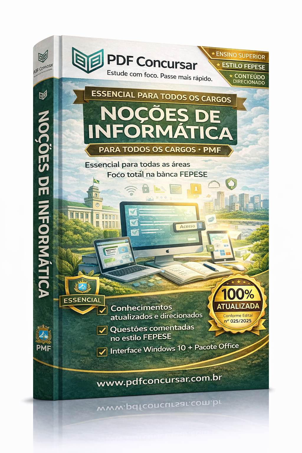 A disciplina de Noções de Informática é decisiva nos concursos da Prefeitura de Florianópolis e, muitas vezes, responsável por separar os aprovados dos eliminados. Pensando nisso, a PDF Concursar desenvolveu este material totalmente direcionado ao estilo da banca FEPESE, com conteúdo claro, atualizado e focado exatamente no que cai em prova.