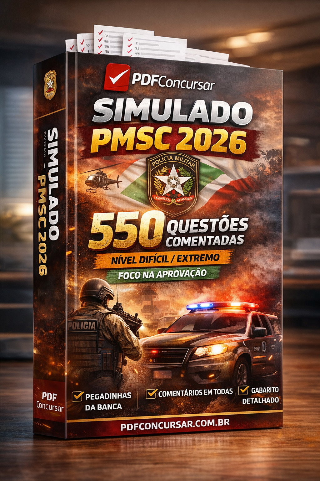 Prepare-se com um produto premium, desenvolvido com rigor técnico absoluto, fidelidade total ao edital e foco real em aprovação no processo seletivo da Polícia Militar de Santa Catarina (PMSC).